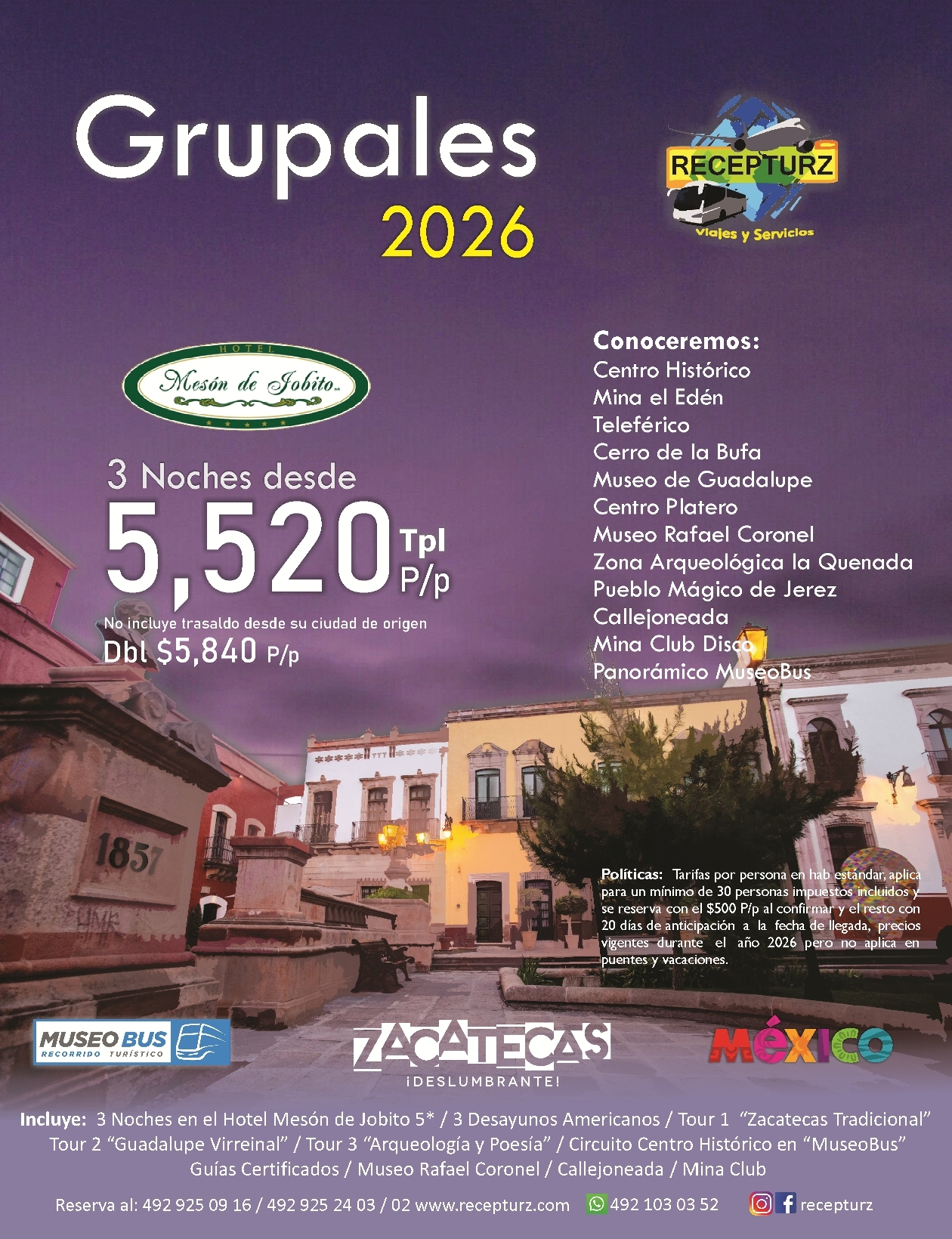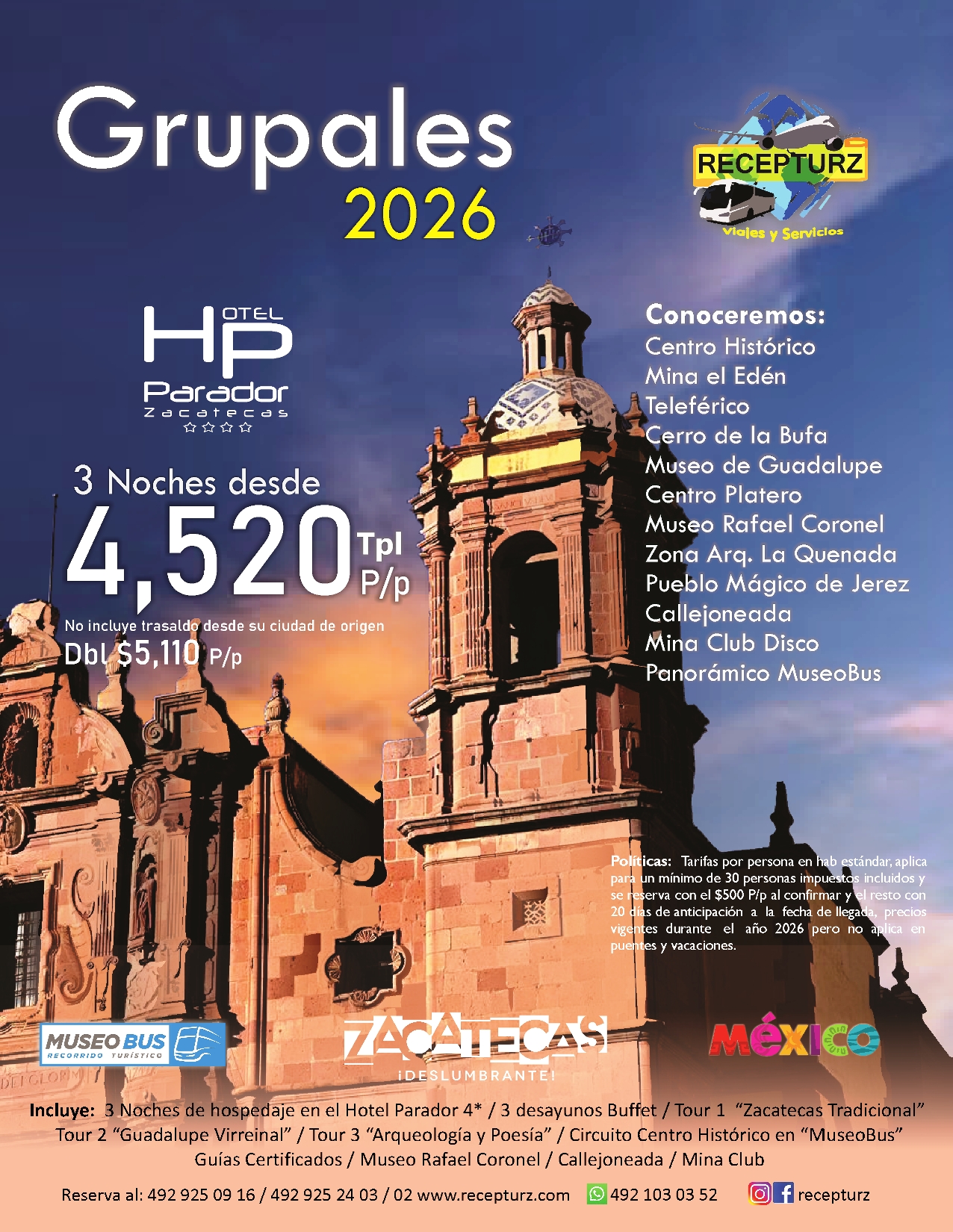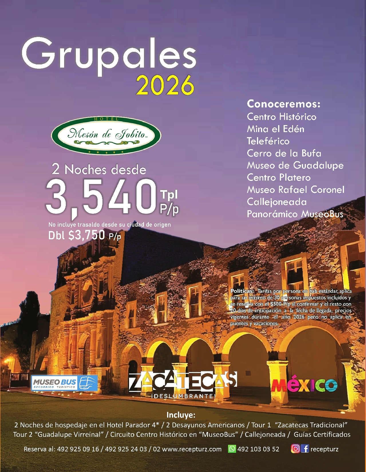 Paquetes Grupales Zacatecas 2026